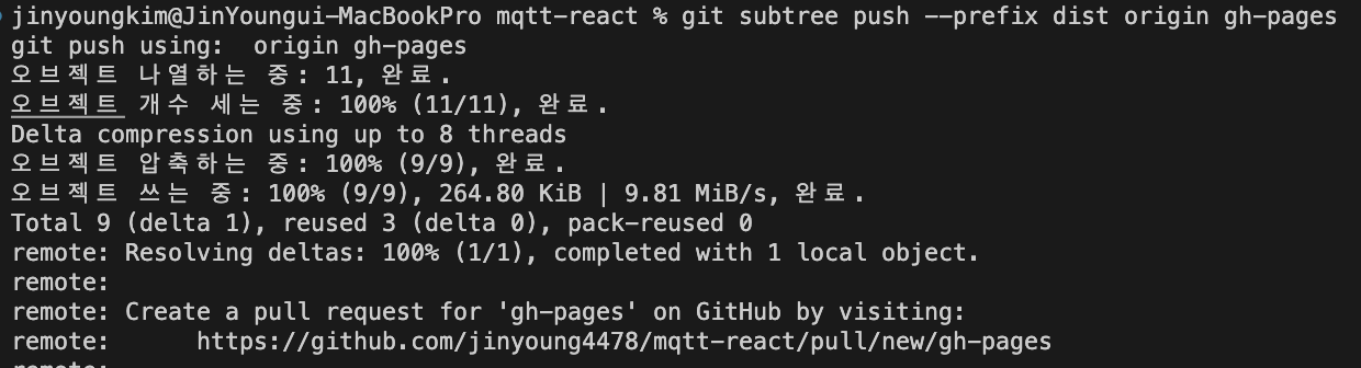 - gh-pages의 브랜치에 dist의 리소스만 업로드 (gh-pages branch가 없어야함)